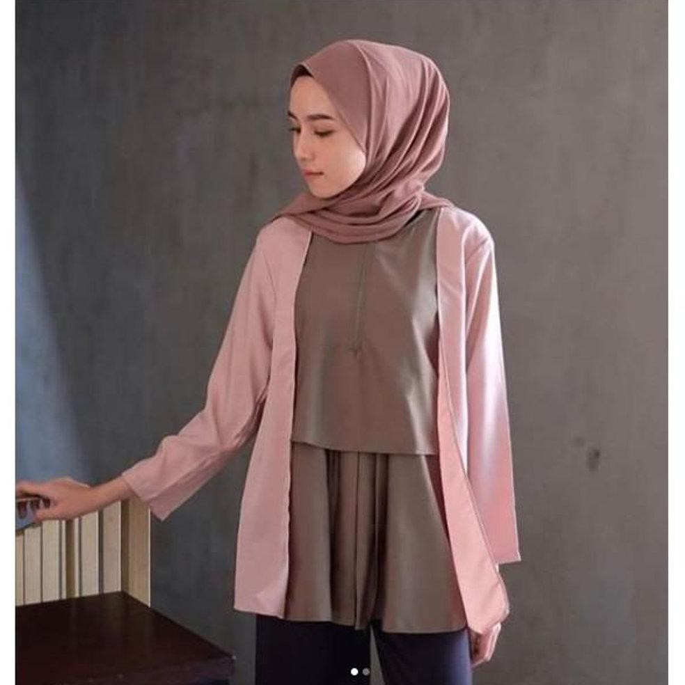 27 Model Baju Muslim Kombinasi Blazer Casual Modern