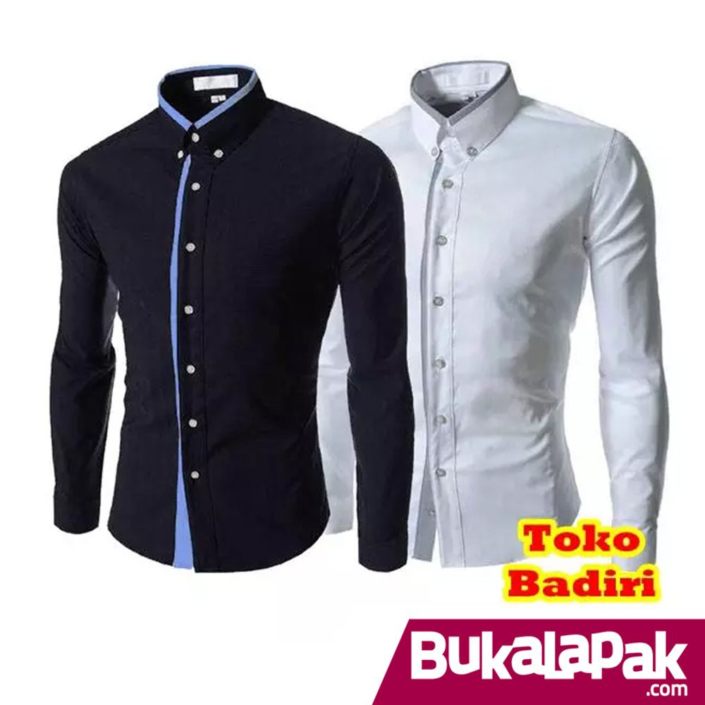 Baju Kemeja Pria Hem Slim Fit Hitam Putih Model Terbaru