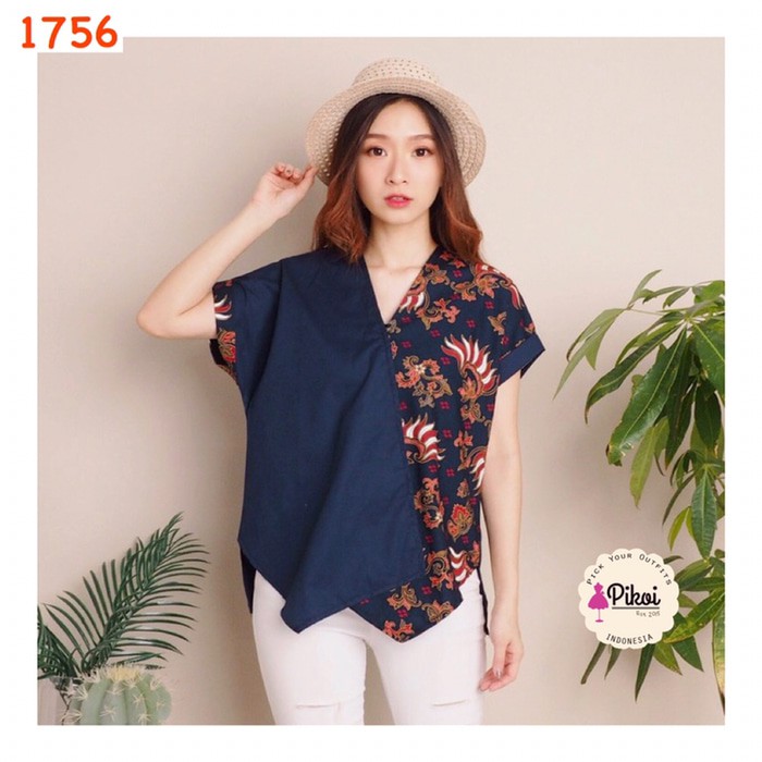 Batik Blouse Modern Dengan Kombinasi Kain Katun Polos Toyobo