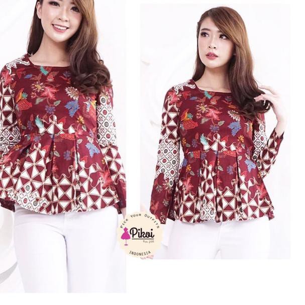 Hot Saleeee Baju Batik Wanita Modern Batik Kantor Kemeja Batik Peplum Kerja